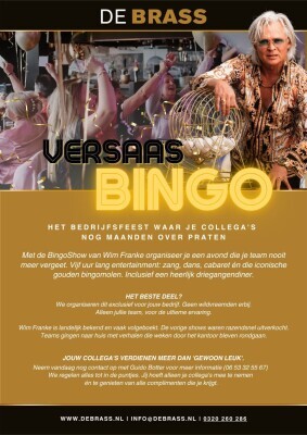Een bedrijfsfeest om niet te vergeten! Zin in een avond vol gezelligheid, muziek en verrassingen? De Brass presenteert de Versaas Bingo Show met Wim Franke.