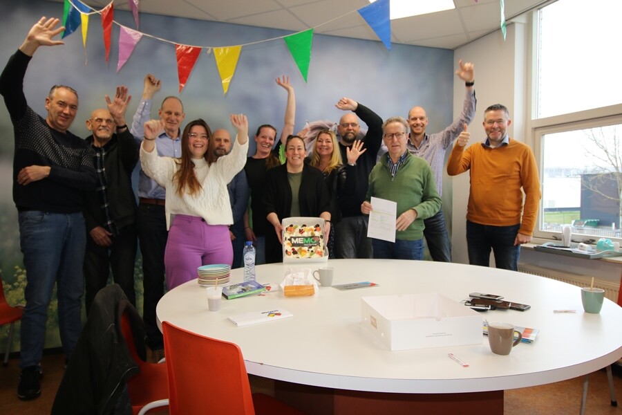 Op de foto het team van MEMO reclame inclusief de oud-eigenaar tijdens het feest van het 50-jarige bestaan