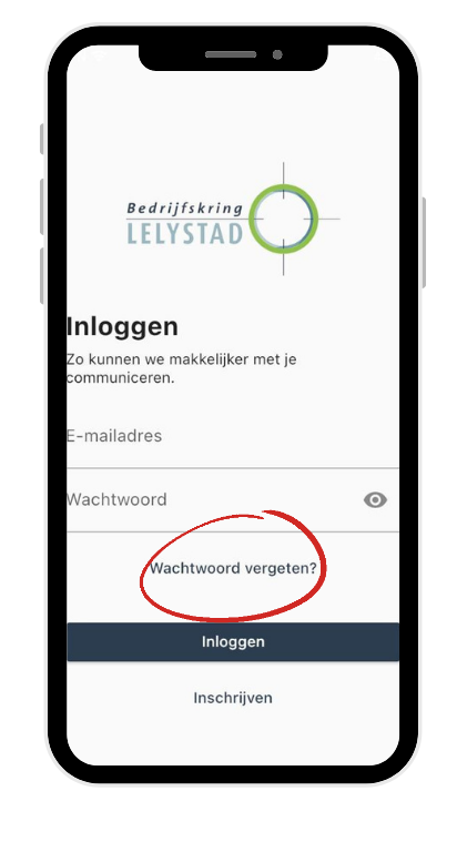 Klik in de BKL app op ‘Wachtwoord vergeten?’ en maak een nieuw wachtwoord aan.