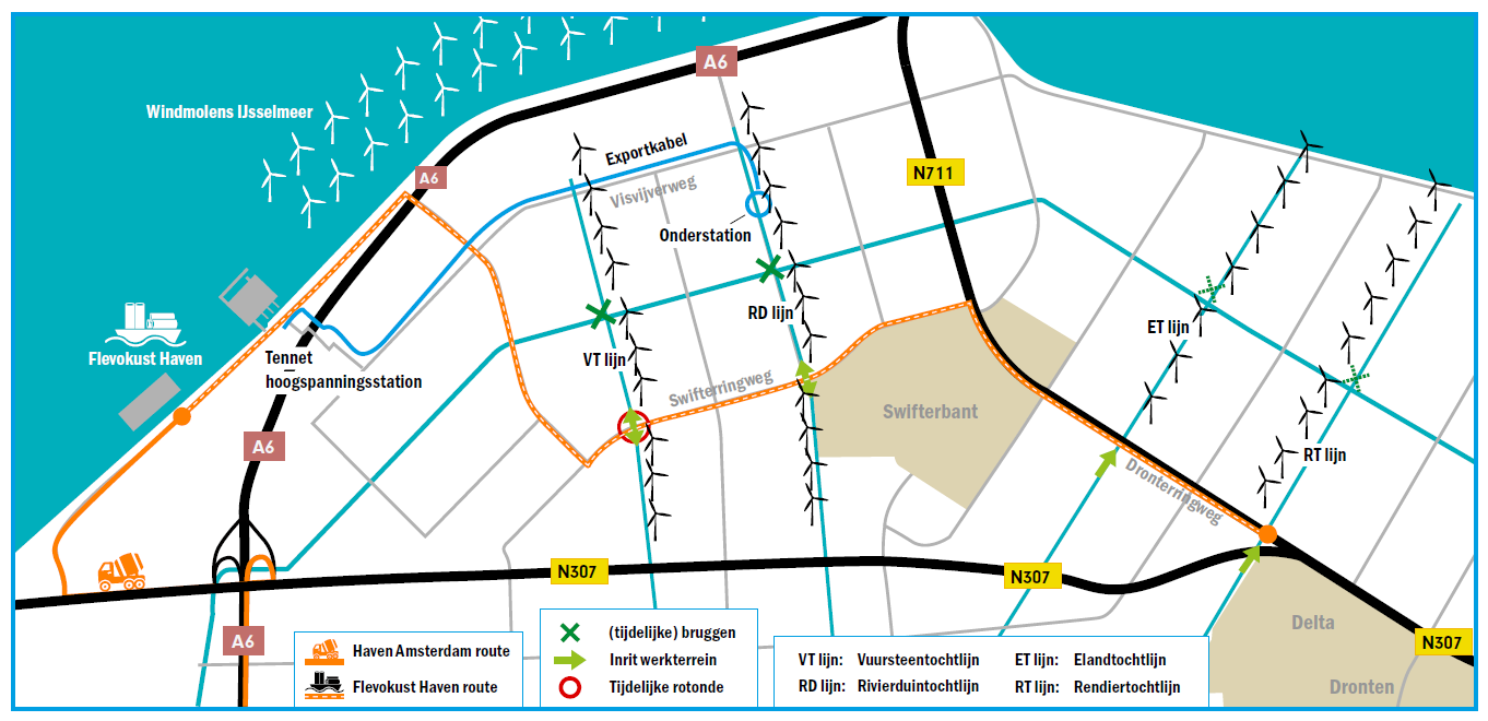 In maart begint de bouw van de 37 windmolens van Windplanblauw op land. Dit duurt naar verwachting tot november. In die tijd (maart-september) worden ook turbine-onderdelen aangevoerd naar het gebied. Deze flyer over Transport en bouw windturbines Windplanblauw op land is huis-aan-huis verspreid in Swifterbant en Dronten en omgeving. Daarnaast organiseert Windplanblauw op zaterdag 5 maart van 10.00 tot 14.00 uur een inloopbijeenkomst in De Hoeksteen (De Poort 17-19 in Swifterbant), voor inwoners en ondernemers die daar vragen over hebben. Operationeel directeur Stephan de Clerck, omgevingsmanager Marit Laane en sitemanager Dennis Hendriks zijn aanwezig om mensen te woord te staan. Als mensen andere vragen hebben, zijn ze uiteraard ook van harte welkom.
